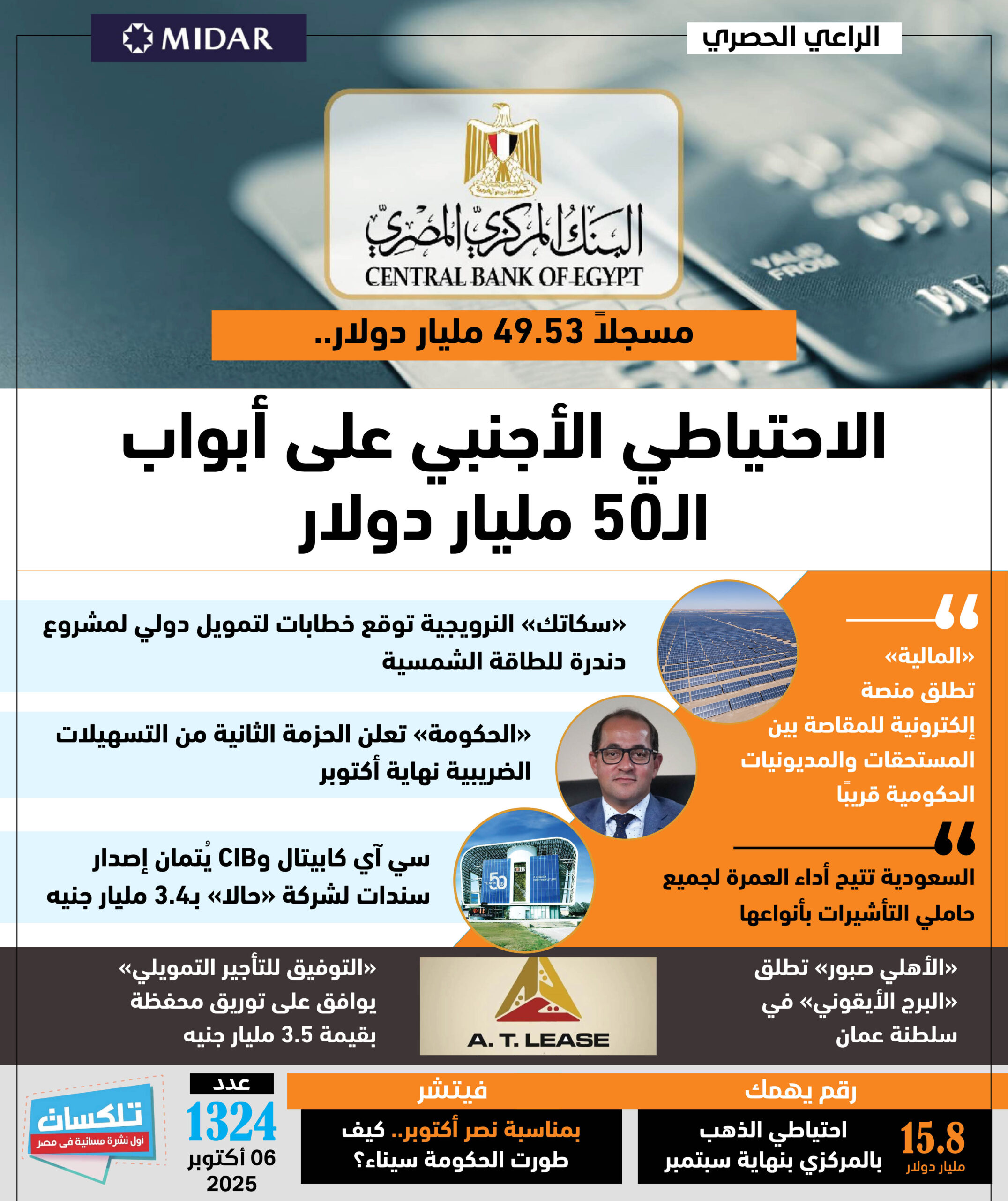أول نشرة إخبارية مسائية فى مصر تطلقها جريدة الاستثمار العربى تأتيكم قبل العاشرة يوميا من الأحد إلى الخميس ..ونقرأ فيها ما يلي: