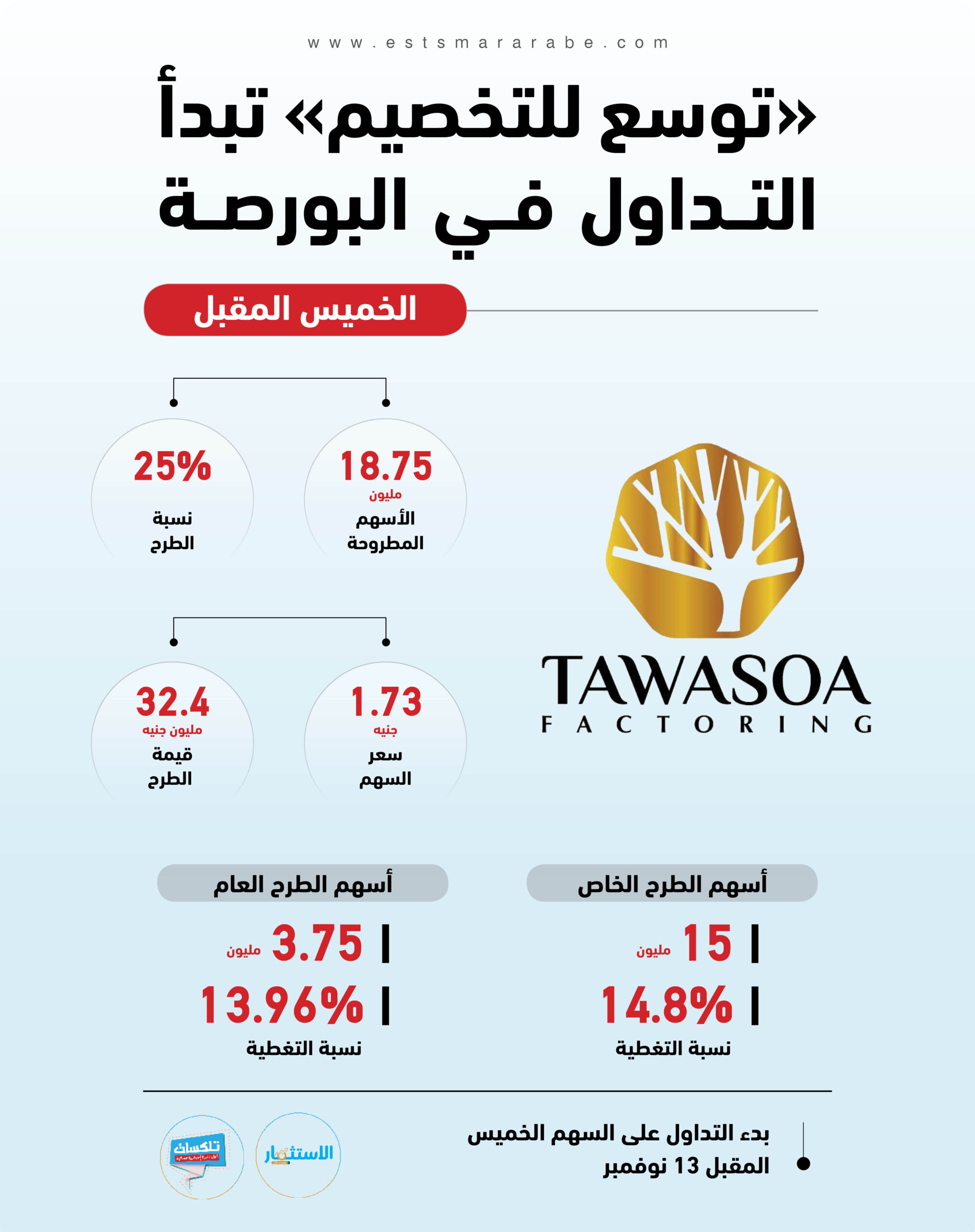 أول نشرة إخبارية مسائية فى مصر تطلقها جريدة الاستثمار العربى تأتيكم قبل العاشرة يوميا من الأحد إلى الخميس