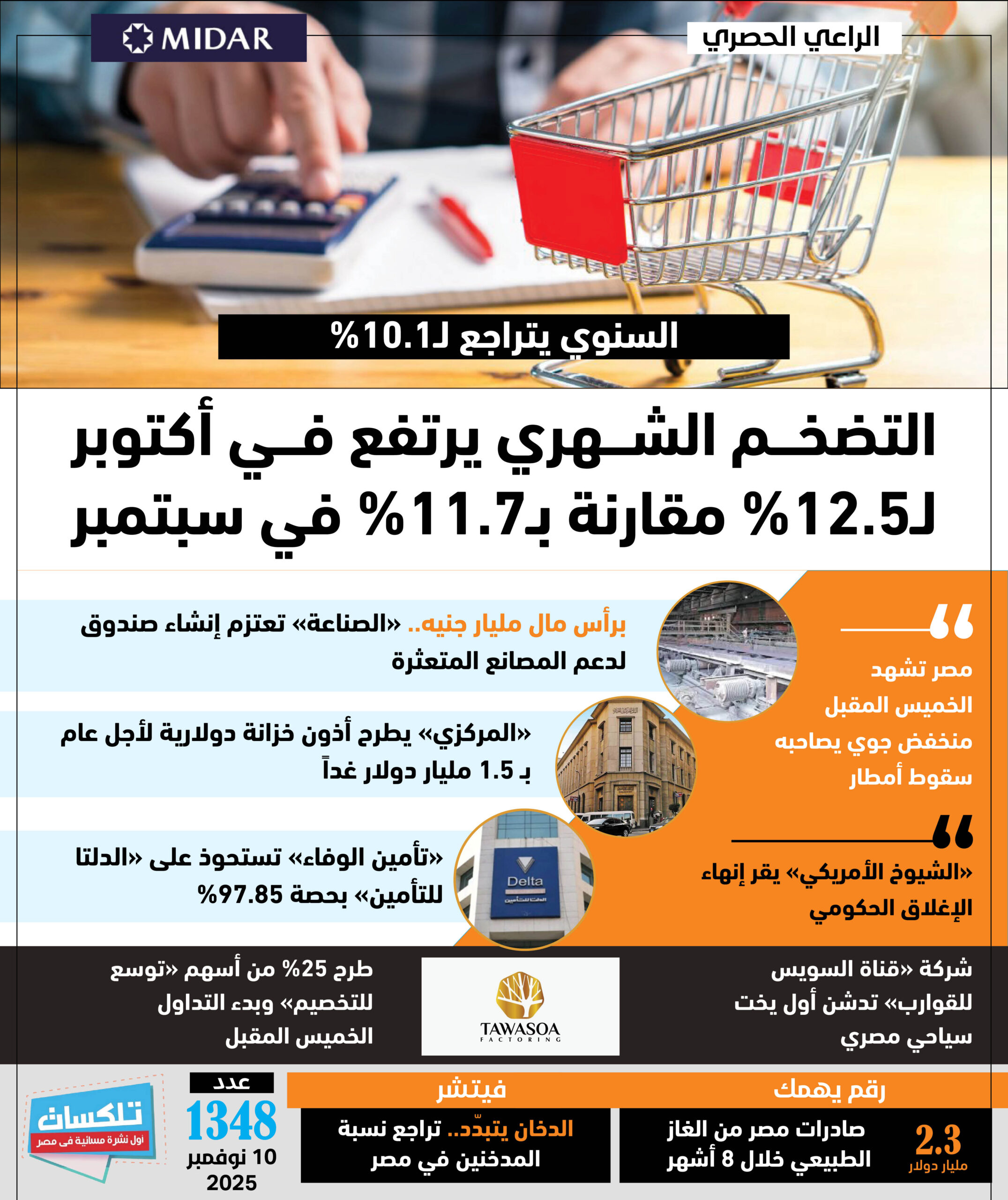 أول نشرة إخبارية مسائية فى مصر تطلقها جريدة الاستثمار العربى تأتيكم قبل العاشرة يوميا من الأحد إلى الخميس ..ونقرأ فيها ما يلي: