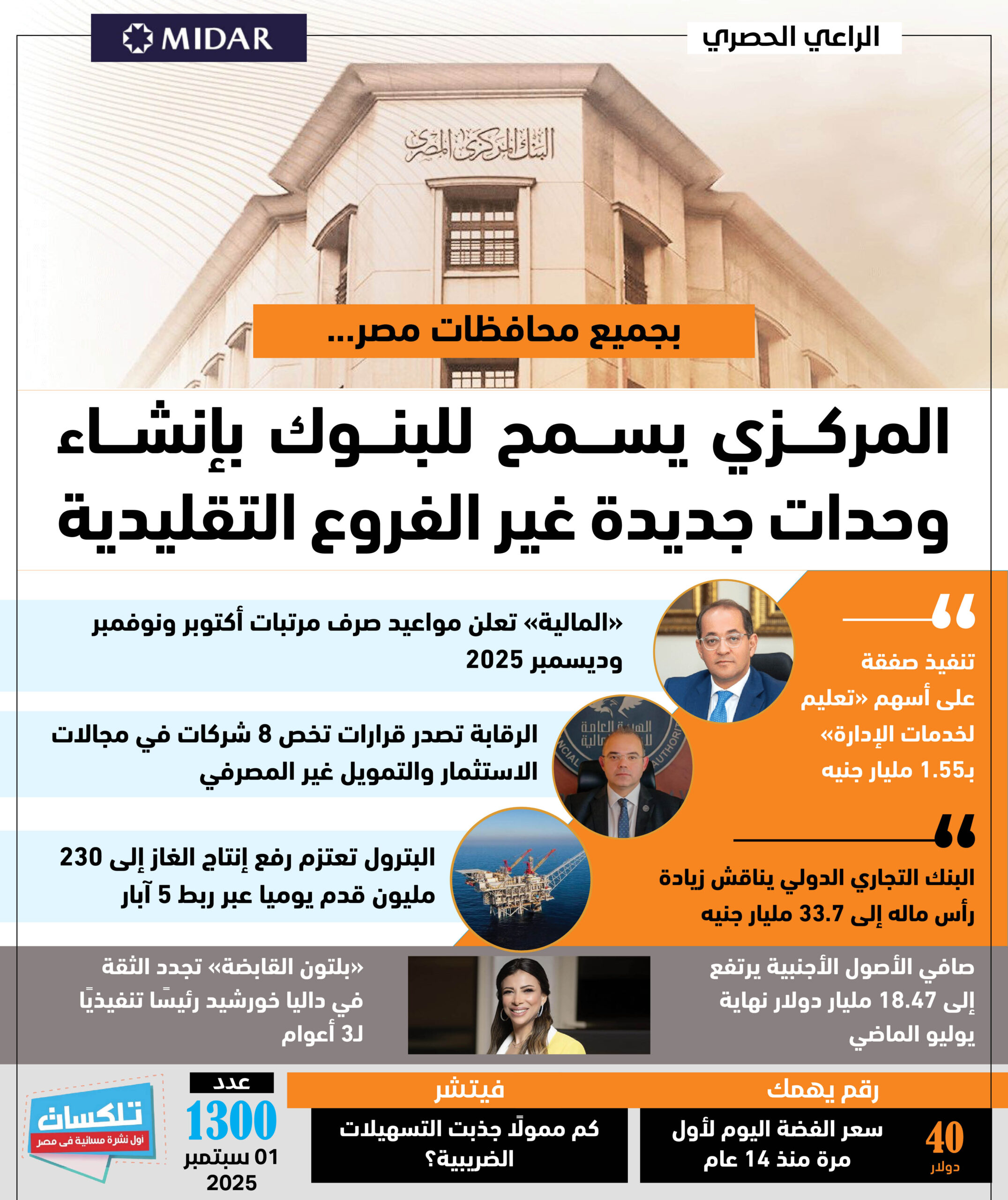 أول نشرة إخبارية مسائية فى مصر تطلقها جريدة الاستثمار العربى تأتيكم قبل العاشرة يوميا من الأحد إلى الخميس ..ونقرأ فيها ما يلي:
