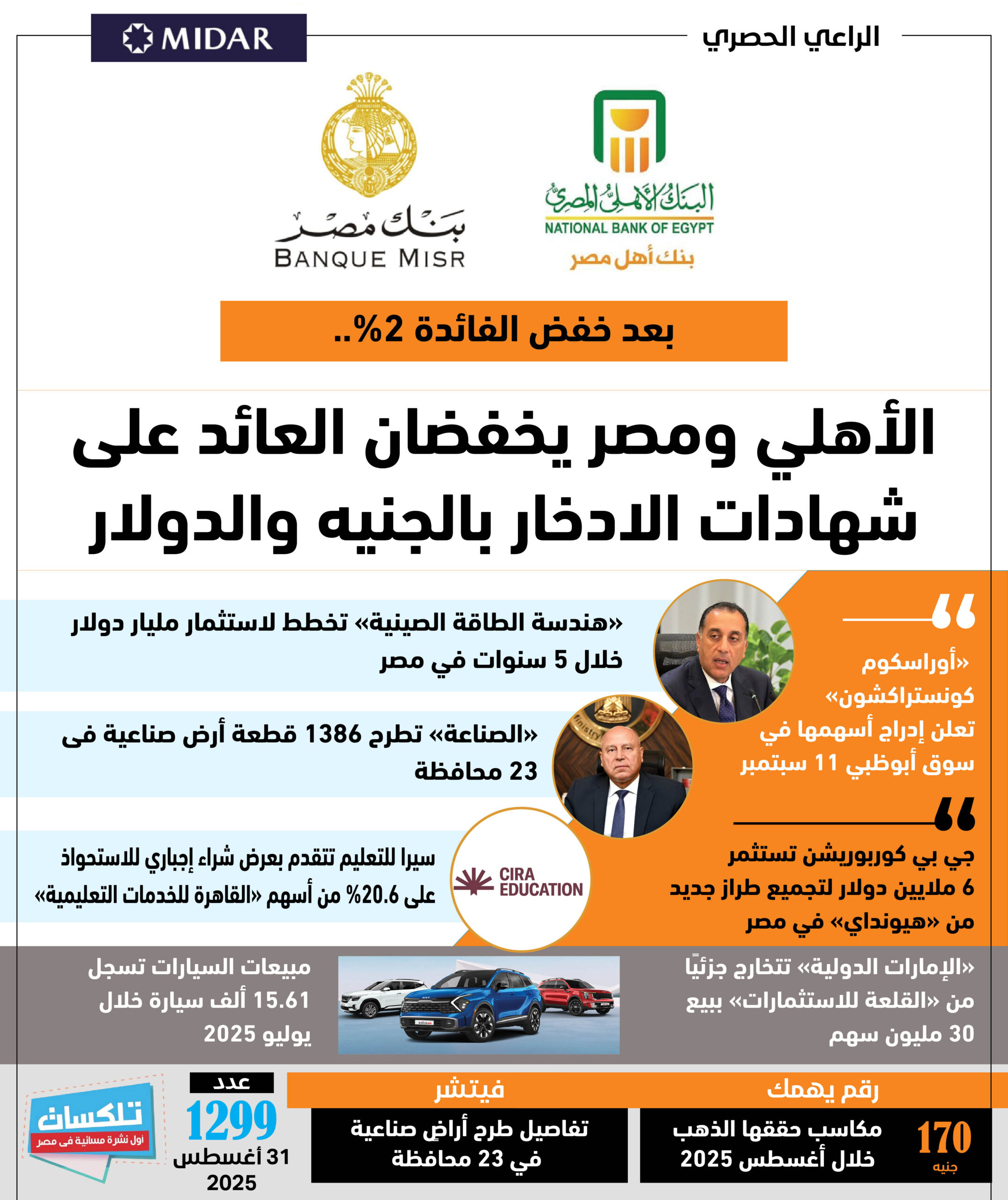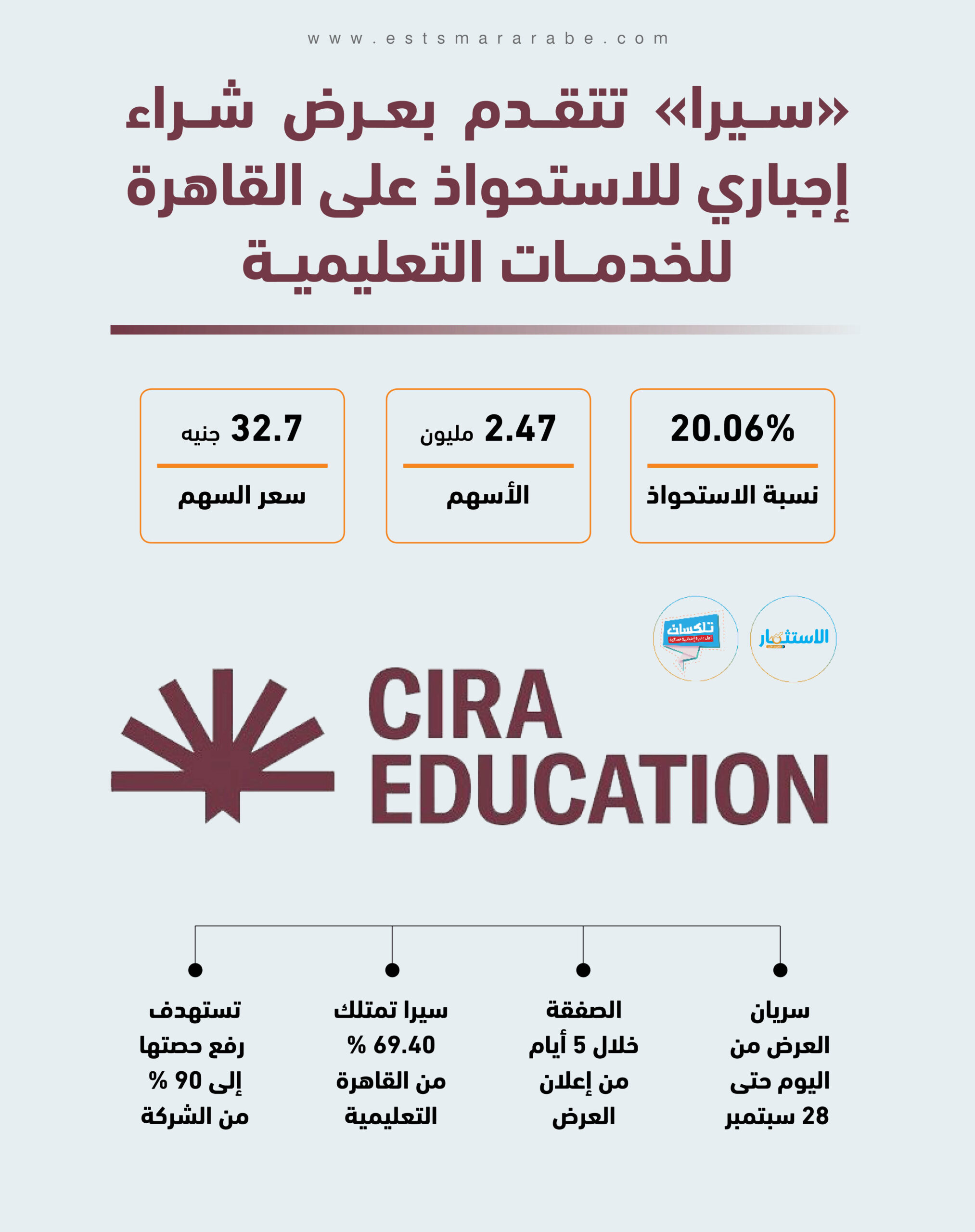 أول نشرة إخبارية مسائية فى مصر تطلقها جريدة الاستثمار العربى تأتيكم قبل العاشرة يوميا من الأحد إلى الخميس