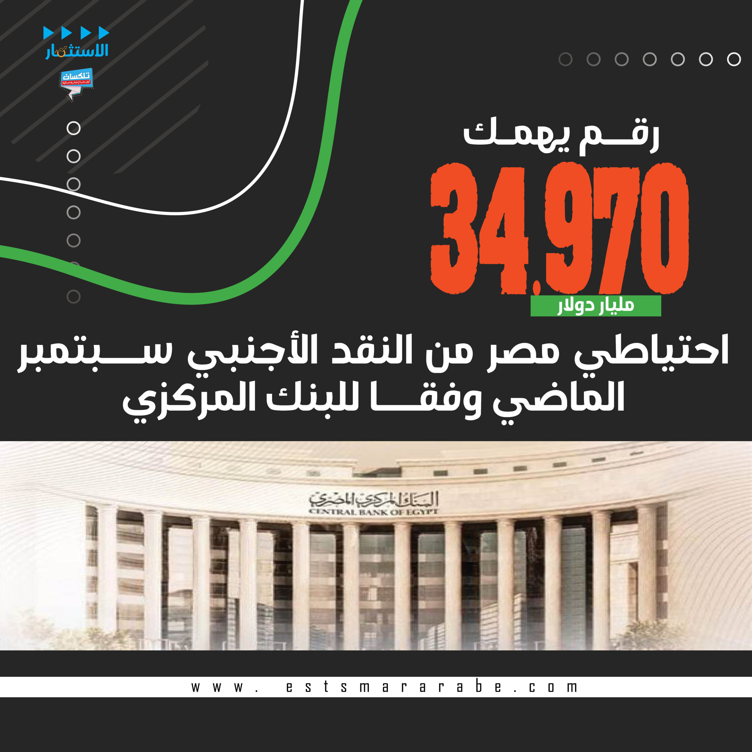 أول نشرة إخبارية مسائية فى مصر تطلقها جريدة الاستثمار العربى تأتيكم قبل العاشرة يوميا من الأحد إلى الخميس