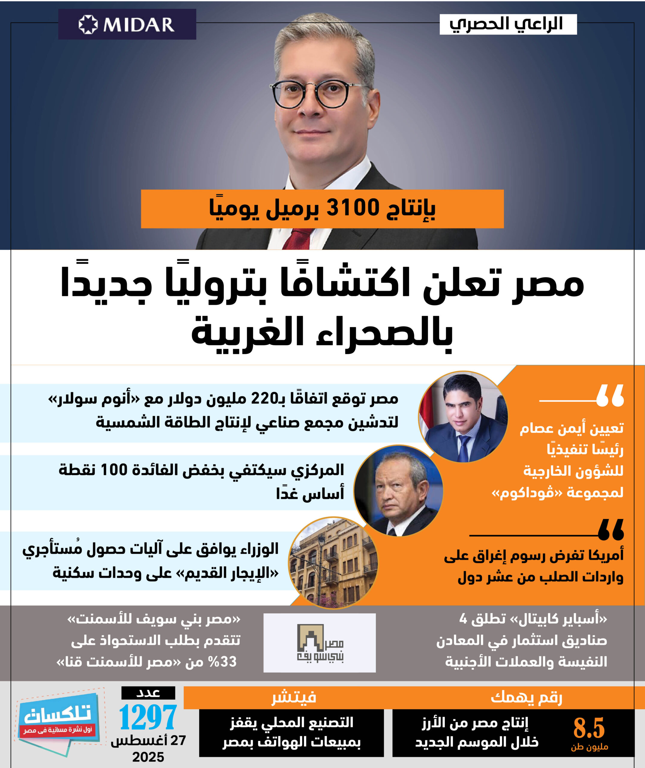 أول نشرة إخبارية مسائية فى مصر تطلقها جريدة الاستثمار العربى تأتيكم قبل العاشرة يوميا من الأحد إلى الخميس ..ونقرأ فيها ما يلي: