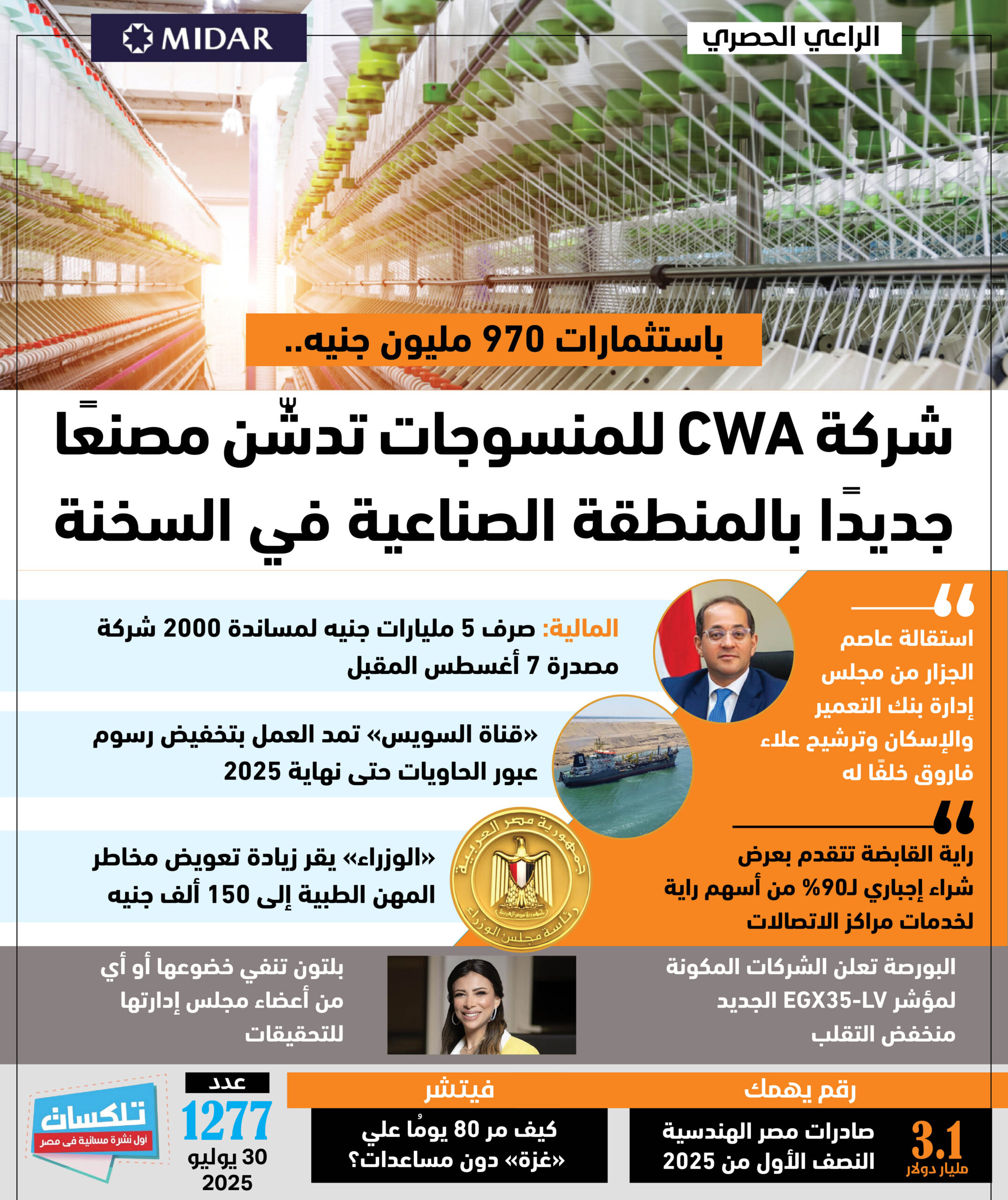 أول نشرة إخبارية مسائية فى مصر تطلقها جريدة الاستثمار العربى تأتيكم قبل العاشرة يوميا من الأحد إلى الخميس
