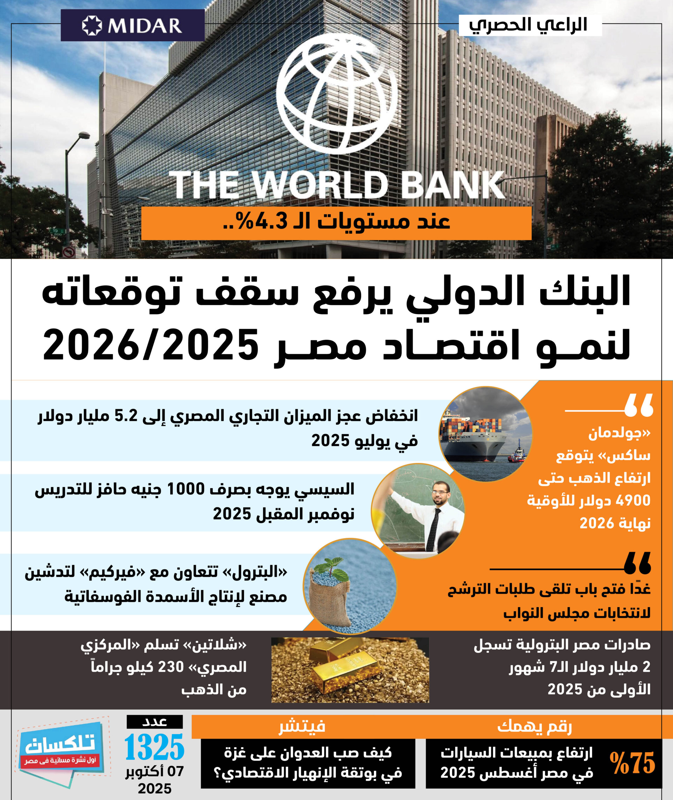 أول نشرة إخبارية مسائية فى مصر تطلقها جريدة الاستثمار العربى تأتيكم قبل العاشرة يوميا من الأحد إلى الخميس ..ونقرأ فيها ما يلي: