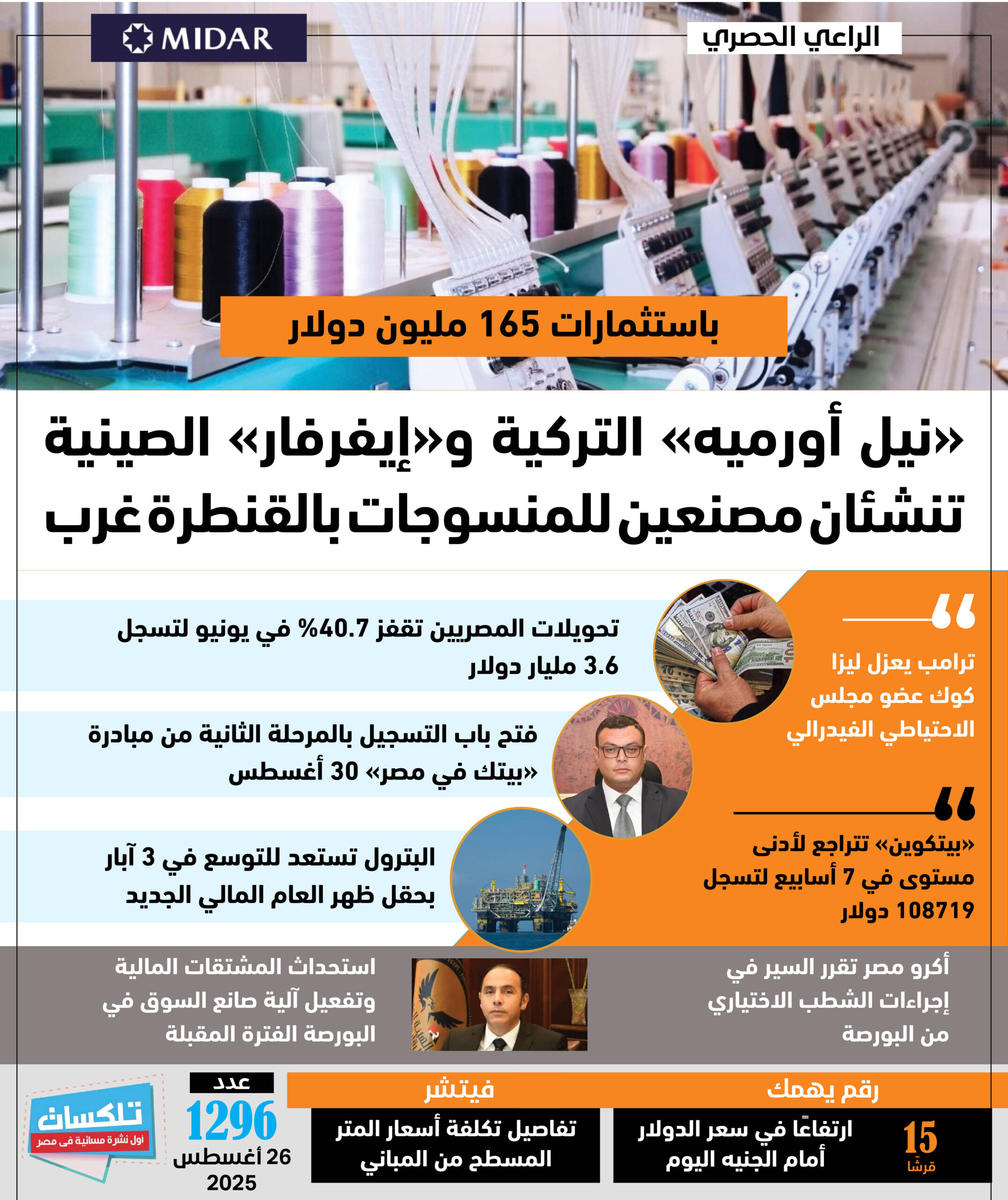 أول نشرة إخبارية مسائية فى مصر تطلقها جريدة الاستثمار العربى تأتيكم قبل العاشرة يوميا من الأحد إلى الخميس ..ونقرأ فيها ما يلي:
