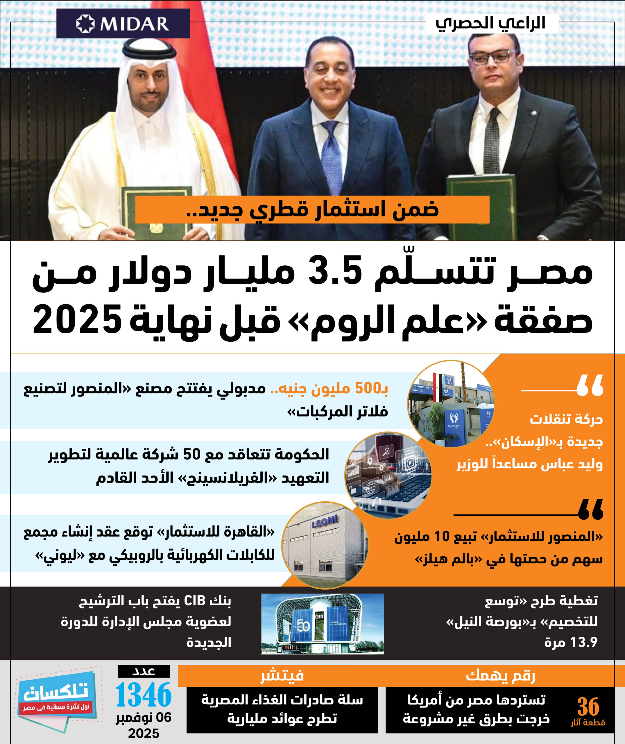 تلكسات نشرة أخبار الخميس الموافق 06 نوفمبر 2025