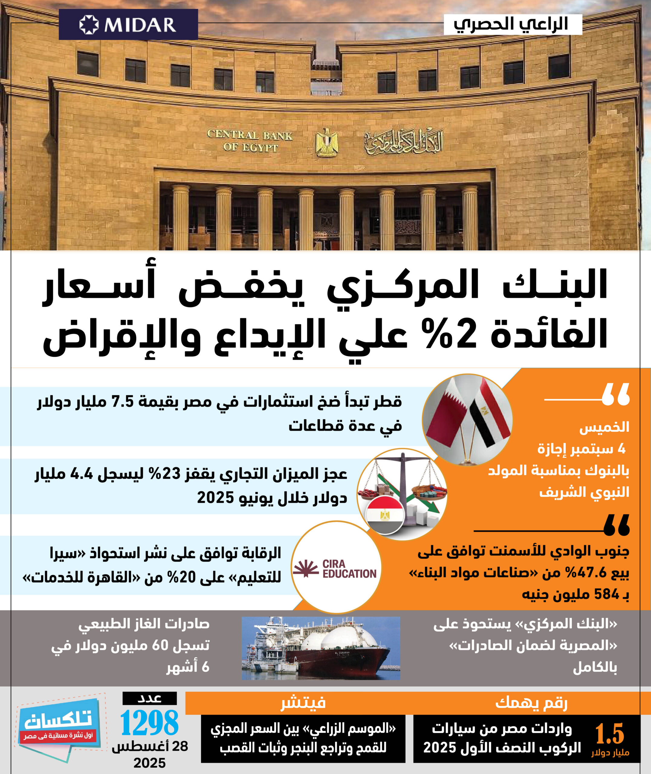 أول نشرة إخبارية مسائية فى مصر تطلقها جريدة الاستثمار العربى تأتيكم قبل العاشرة يوميا من الأحد إلى الخميس ..ونقرأ فيها ما يلي: